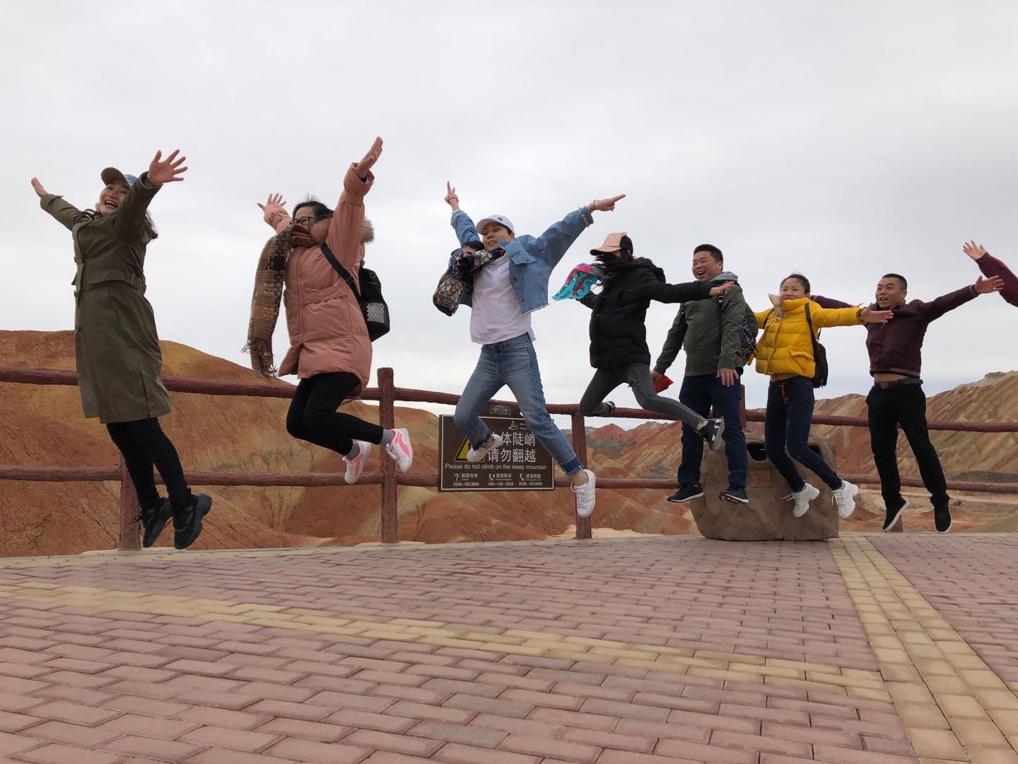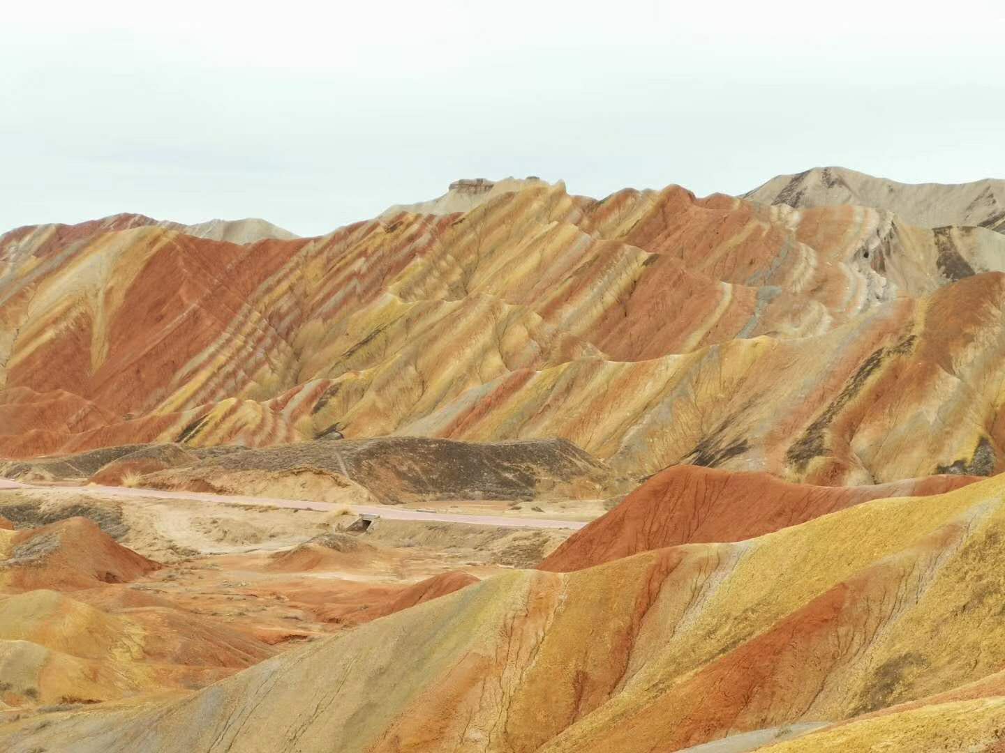 第四天早餐后,我們坐車穿過河西走廊,到達張掖,參觀中國最美的丹霞地貌之一,也是我們的第四站:張掖的七彩丹霞地貌。我們乘觀光車先后參加了2、1、5、4四個觀景臺,游覽了在七彩丘陵間形成的七彩鏈、七彩屏、七彩塔等景觀。每個觀景臺上的視野都非常開闊,四周都是五彩的山峰波瀾起伏,讓人目不暇接,每一個角度都覺得非常奇幻瑰麗。在陽光的照射下,山體可以自然形成紅、黃、橙、白、青、紫等多種鮮艷的色彩,五彩斑斕。這里也被中國地理雜志評為中國最美的七大丹霞之一;被《圖說天下·國家地理》編委會評為“奇險靈秀美如畫——中國最美的六處奇異地貌”之一; 這里是三槍拍案驚奇等許多知名電影的外景地;這里還是攝影愛好者的天堂……景色美美噠!心情更是美美噠!
