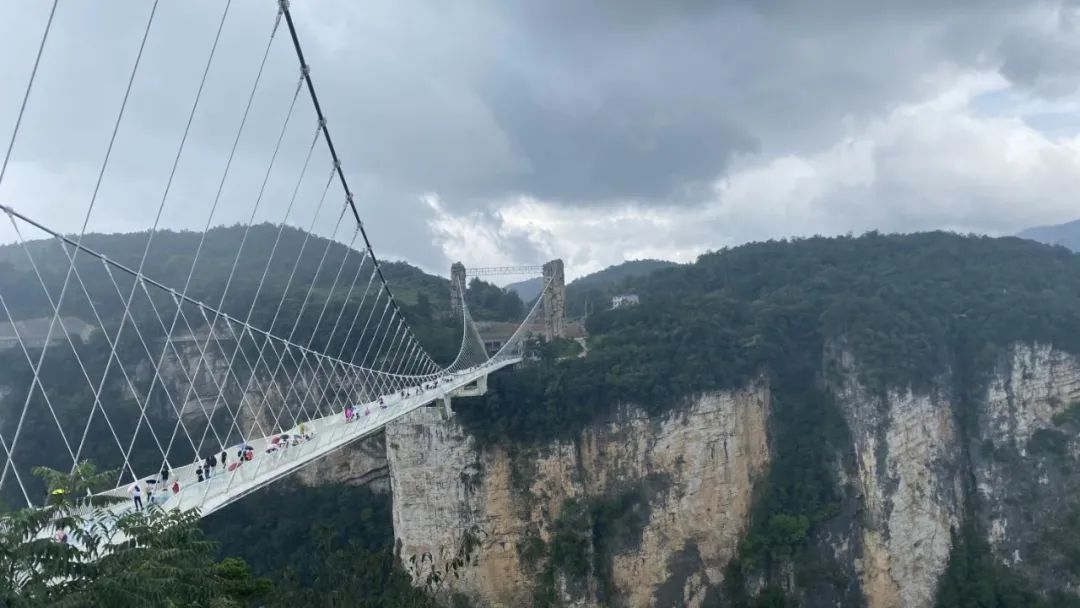 旅游大巴載著滿車的歡聲笑語從衡陽出發(fā),途經(jīng)婁底、益陽、常德,經(jīng)過近六小時車程,我們抵達了武陵源景區(qū)。大家稍作休整,來到了此次行程的第一站——張家界赫赫有名的“玻璃橋”,這是世界最高最長的玻璃橋,橋面全部采用透明玻璃鋪設(shè),在云霧之間,大橋宛如千尺綾緞若隱若現(xiàn)。