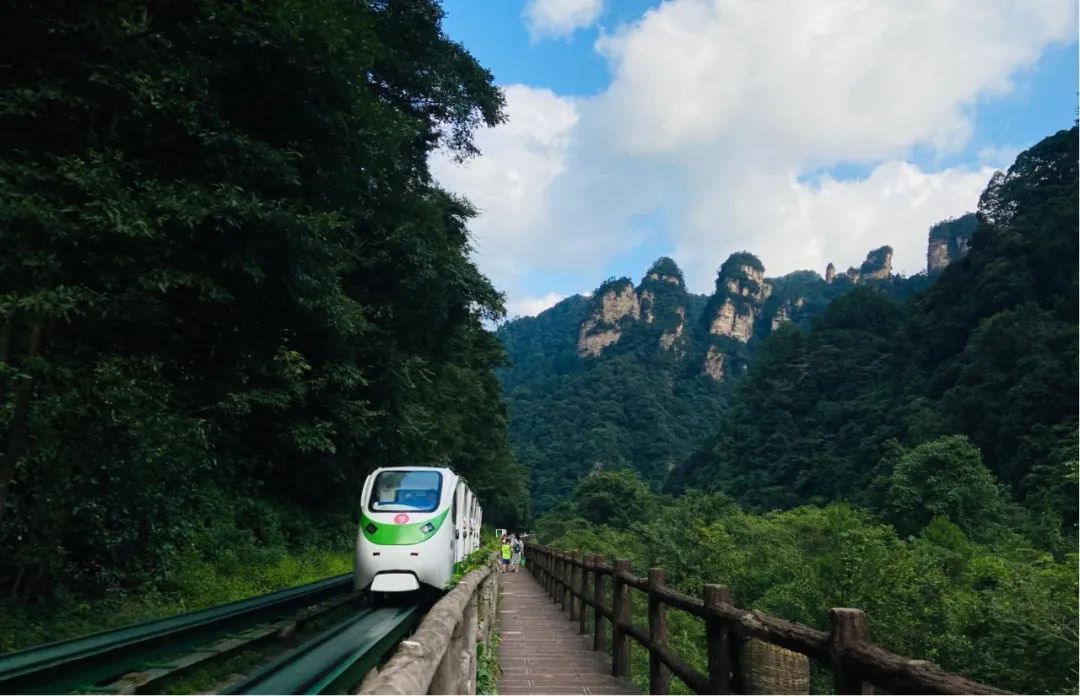 大家一起乘坐世界最高中國首創(chuàng)——百龍?zhí)焯荩?6秒的景區(qū)交通,雖然只是短短一瞬,但我們因為它有了奇跡般的體驗,甚至不由自主的發(fā)出連連驚嘆。之后,我們從頂峰而下,站在山腳感受自然美景與人造景觀完美結(jié)合的偉大奇觀。