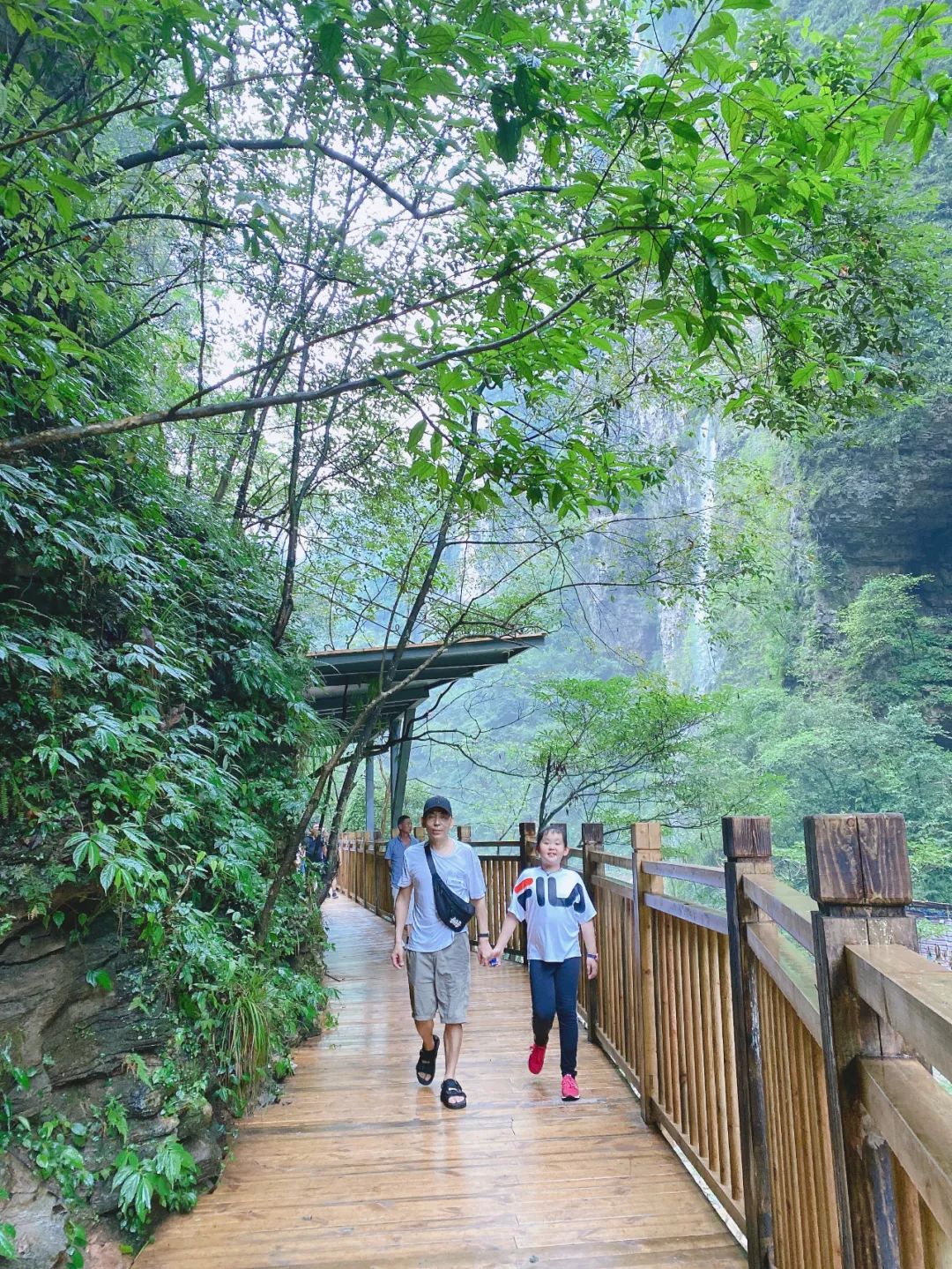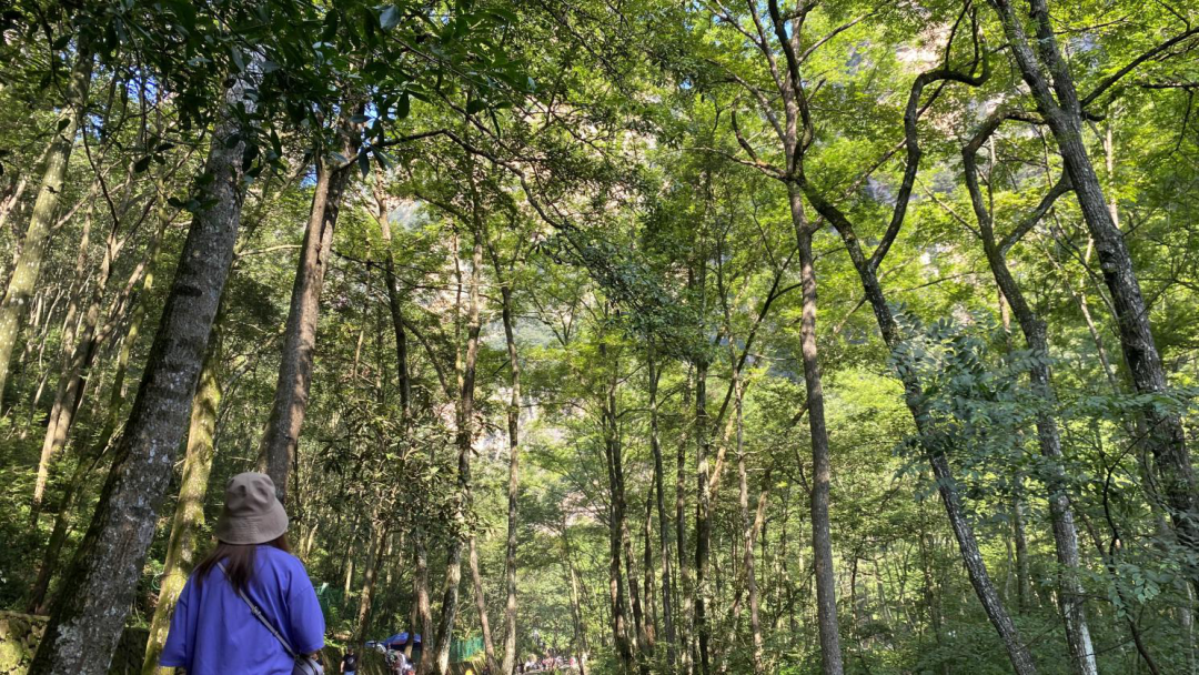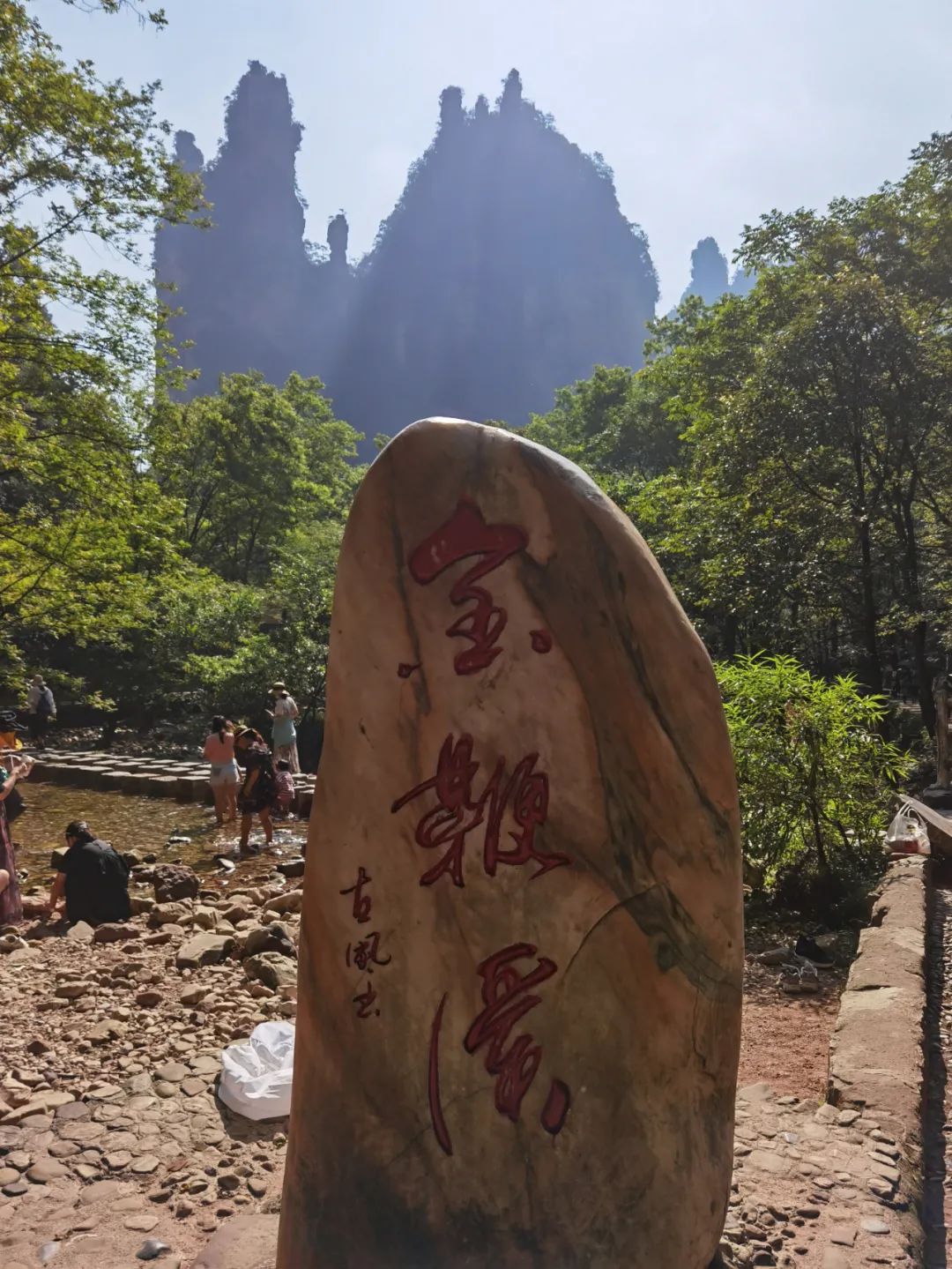 第三天早餐后,我們前往第四站——張家界國家森林公園,游覽金鞭溪景區(qū),溪水從山中溝壑流淌而來,清澈透亮,明凈涼爽,水流時而窄,時而寬,時而急,時而緩。溪的兩邊千峰聳立,高入云天,樹木繁茂,濃蔭蔽日,這兒溪水潺潺、琉璃飛瀑,奇花異草與珍禽異獸同生共榮,構(gòu)成極為秀麗、清幽、自然的生態(tài)環(huán)境,被稱為“世界美麗的峽谷”,“富有詩意的溪流”,著名景點有千里相會、水繞四門、張良墓、萬歲碑重歡樹等。大家放慢了節(jié)奏,漫步金鞭溪畔,兩岸群山,青翠欲滴,寧靜而美好。