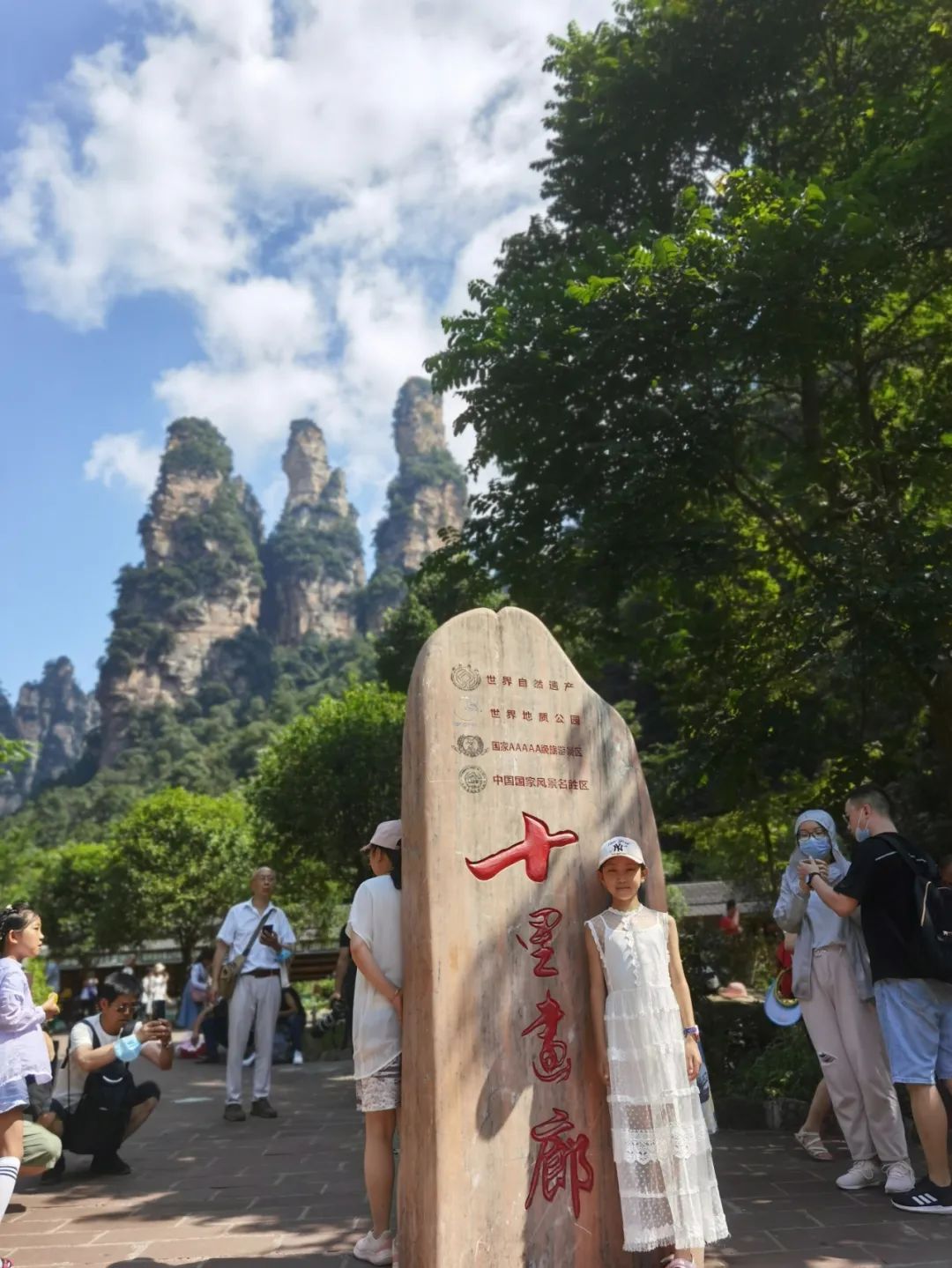 第二天,我們來到了第三站——天子山、袁家界,這里有電影《阿凡達》的拍攝景點——"哈利路亞山”,在這里可探尋影視阿凡達中群山漂浮、星羅棋布的玄幻莫測世界,參觀云霧繚繞、峰巒疊嶂、氣勢磅礴的迷魂臺等景點,神奇美妙的懸浮山原形——天子山。天子山享有“誰人識得天子面,歸來不看天下山”“不游天子山,枉到武陵源”的美譽,山上云霧變幻無窮,儀態(tài)萬千,時如江海翻波,涌濤逐浪,時若輕紗掩體,飄渺虛無。