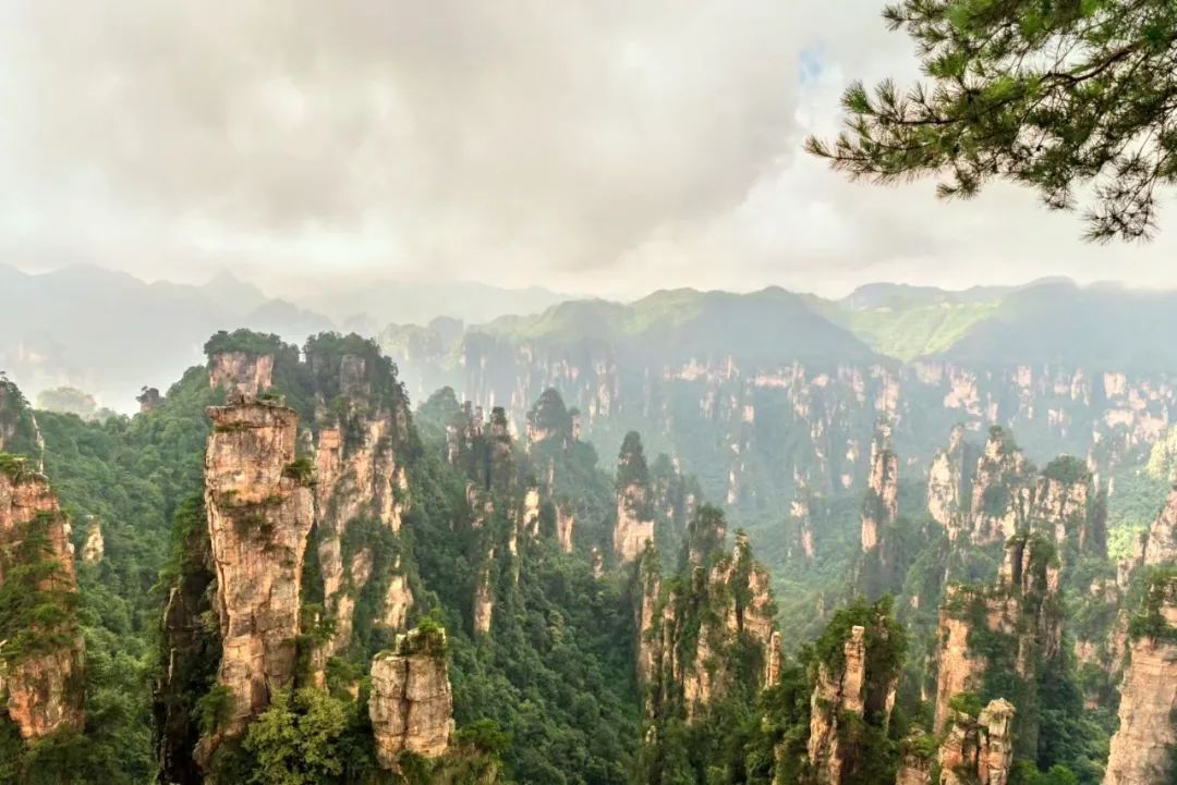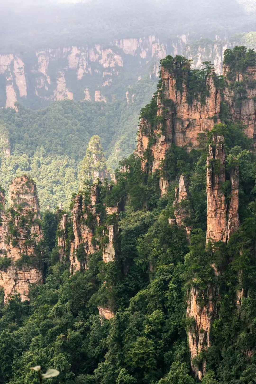雨后的天子山更是美不勝收,青山層層疊疊,在薄薄的霧氣籠罩下,朦朦朧朧。游覽集自然與人文于一體的賀龍公園、御筆峰、仙女獻花、西海石林、石船出海等景點,我們站在山頂眺望,讓人不禁感嘆大自然這位雕塑師鬼斧神工的絕妙。
