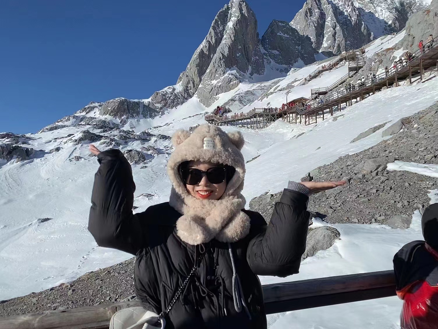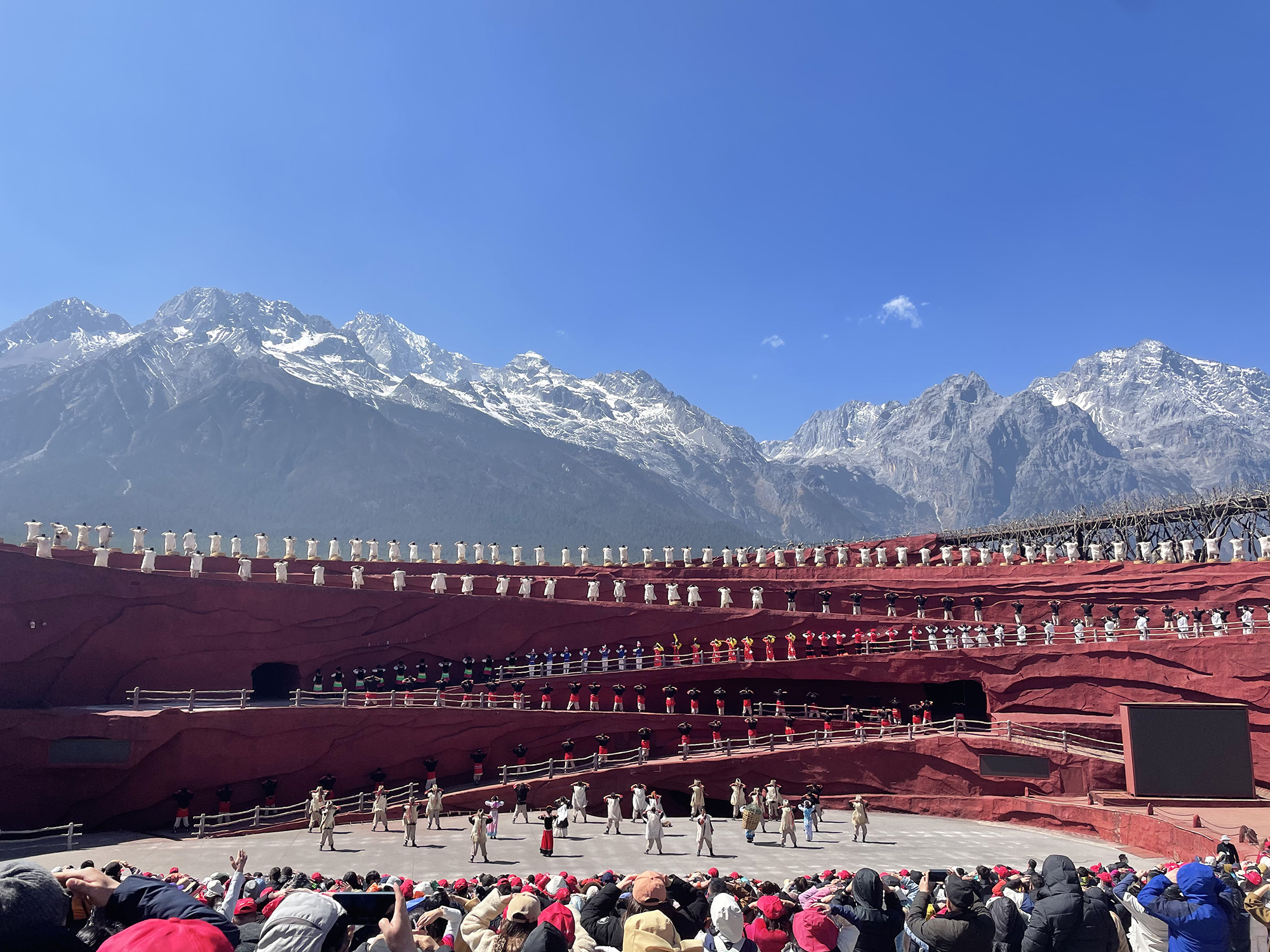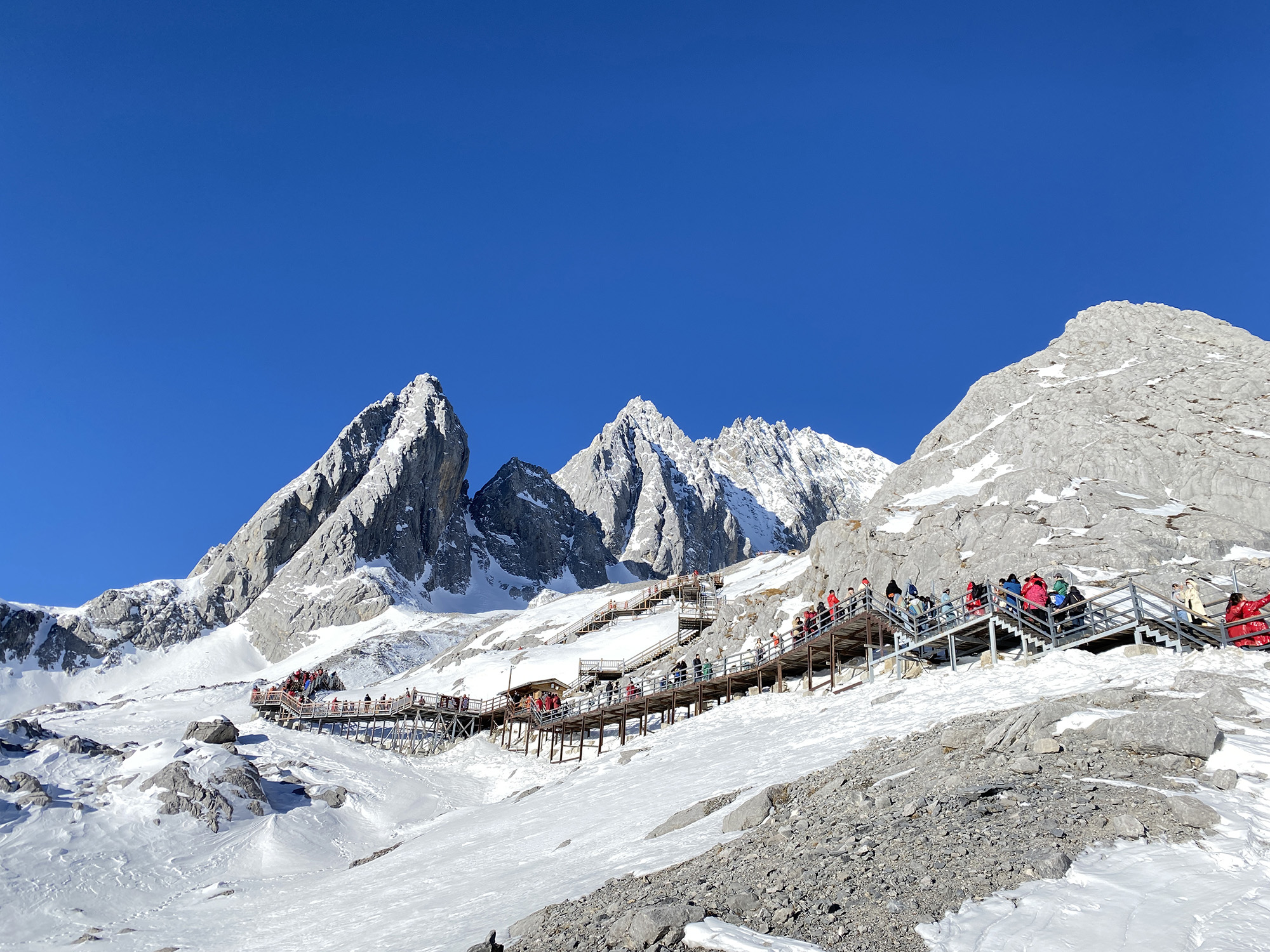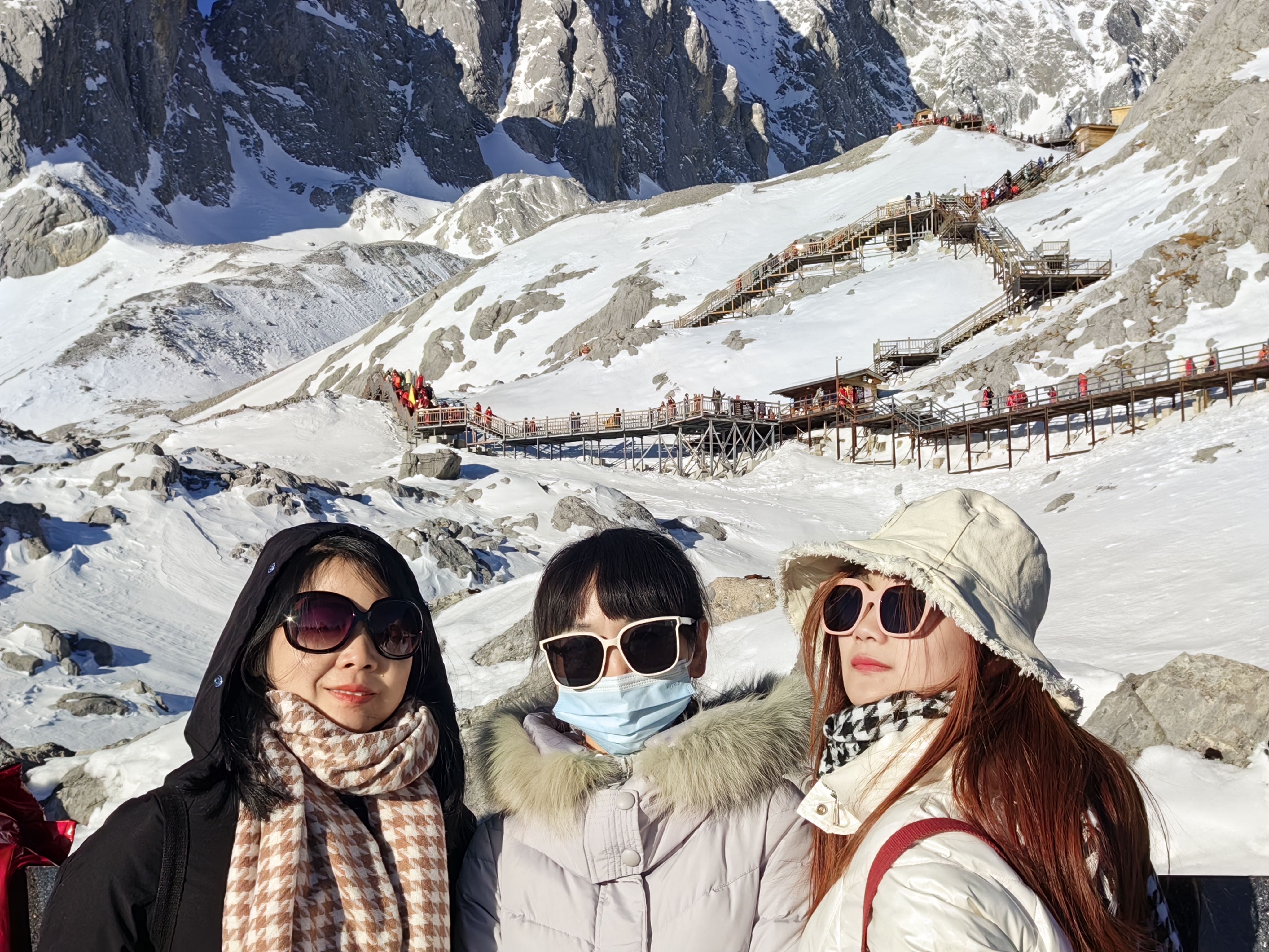 從黃花機場出發(fā),飛過祖國水墨山河,到達麗江。一天的休息與調整,懷揣著期待,我們前往險奇美秀的玉龍雪山。來到玉龍雪山就被它那不凡的氣勢所震撼:13座山峰高聳入云,猶如13柄閃著寒光的巨劍直刺藍天,又似13根擎天立地的巨柱并列大地,再凝目欣賞,它更像是一條矯健的玉龍從碧空蜿蜒而來,氣勢磅礴,壯麗無比,在碧藍天幕和悠悠白云的映襯下,展露著一種雄奇壯麗的美。