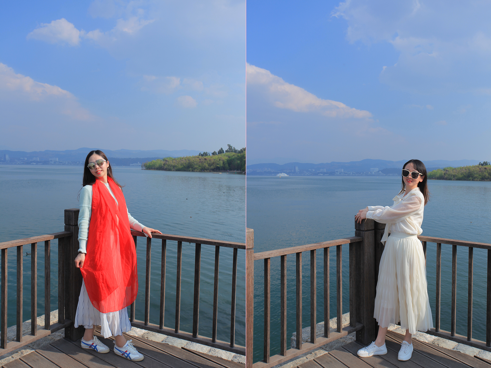 乘車前往洱海最美海岸線。行至生態(tài)廊道龍龕碼頭,邂逅“旅拍婚紗照圣地”的浪漫,捕捉古樸村落的時光痕跡。湖南的湖水少有這樣的藍,這樣的粼粼拍岸的水波,有時突然就愿意相信,這真的是某個海濱城市。幽藍色的海水,深不見底卻清澈明亮,蒼山遙遙呼應在遠方,山海之間,悠長而深遠。漫步在夕陽下,最好的同事在身邊,最好的朋友在遠方遙遙掛念,這就是旅行最好的意義吧。
