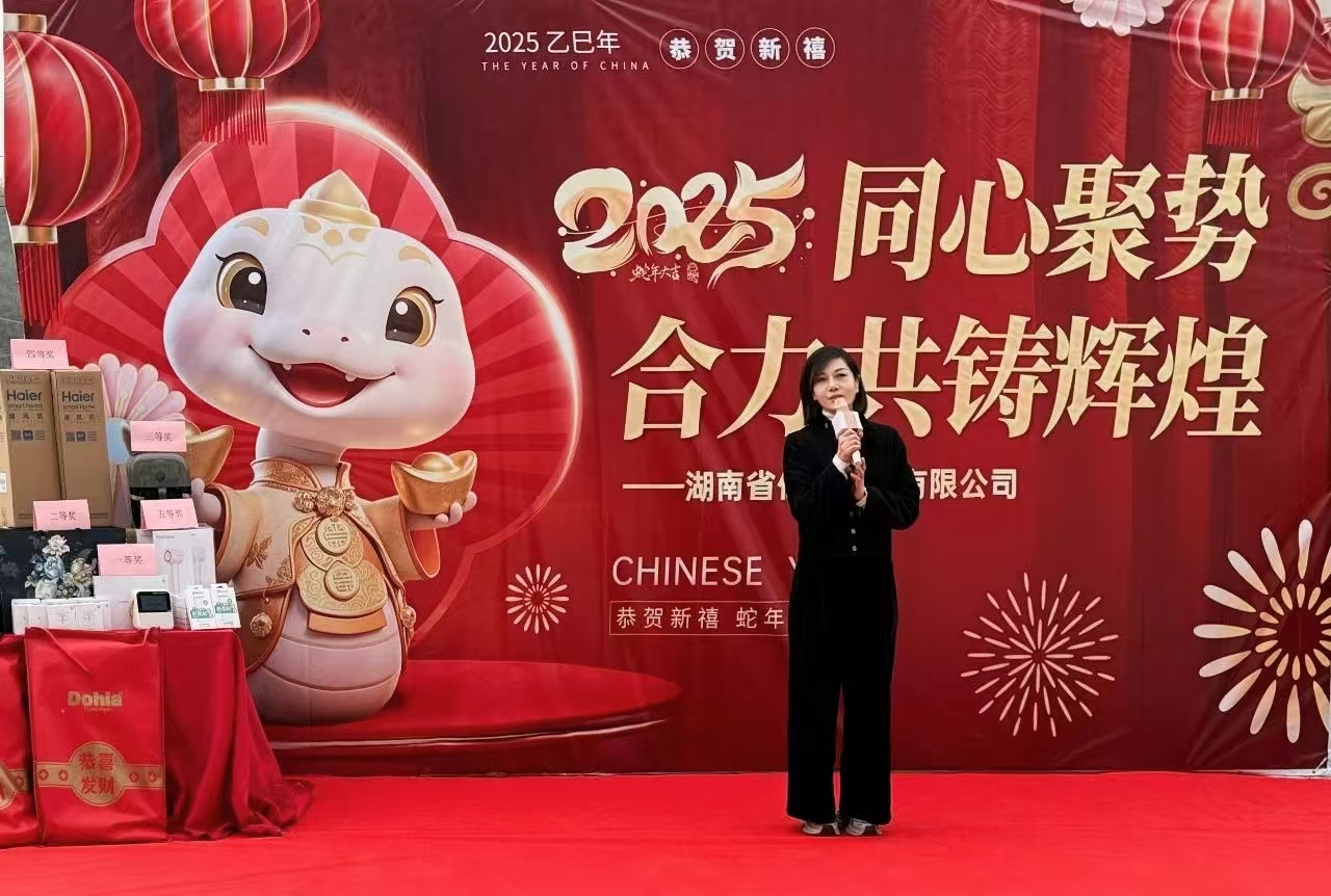 總經(jīng)理石艷軍女士也發(fā)表了致辭。她首先回顧了過(guò)去一年中各部門(mén)的辛勤工作和取得的豐碩成果,對(duì)他們的努力和付出表示了衷心的感謝和認(rèn)可。同時(shí),她也對(duì)新的一年充滿了期待,鼓勵(lì)大家站在2025年的起跑線上,帶著對(duì)未來(lái)的美好憧憬,繼續(xù)以?shī)^斗者的姿態(tài),迎接新的挑戰(zhàn),創(chuàng)造新的輝煌!