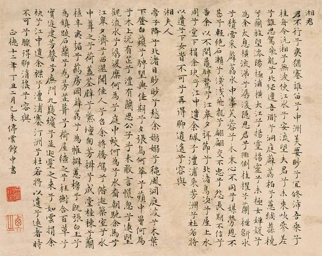 詩中這樣描寫道:“筑室兮水中,葺之兮荷蓋。蓀壁兮紫壇,播芳椒兮成堂。桂棟兮蘭橑,辛夷楣兮藥房。罔薜荔兮為帷,擗蕙櫋兮既張。白玉兮為鎮(zhèn),疏石蘭兮為芳。芷葺兮荷屋,繚之兮杜衡。合百草兮實(shí)庭,建芳馨兮廡門。”