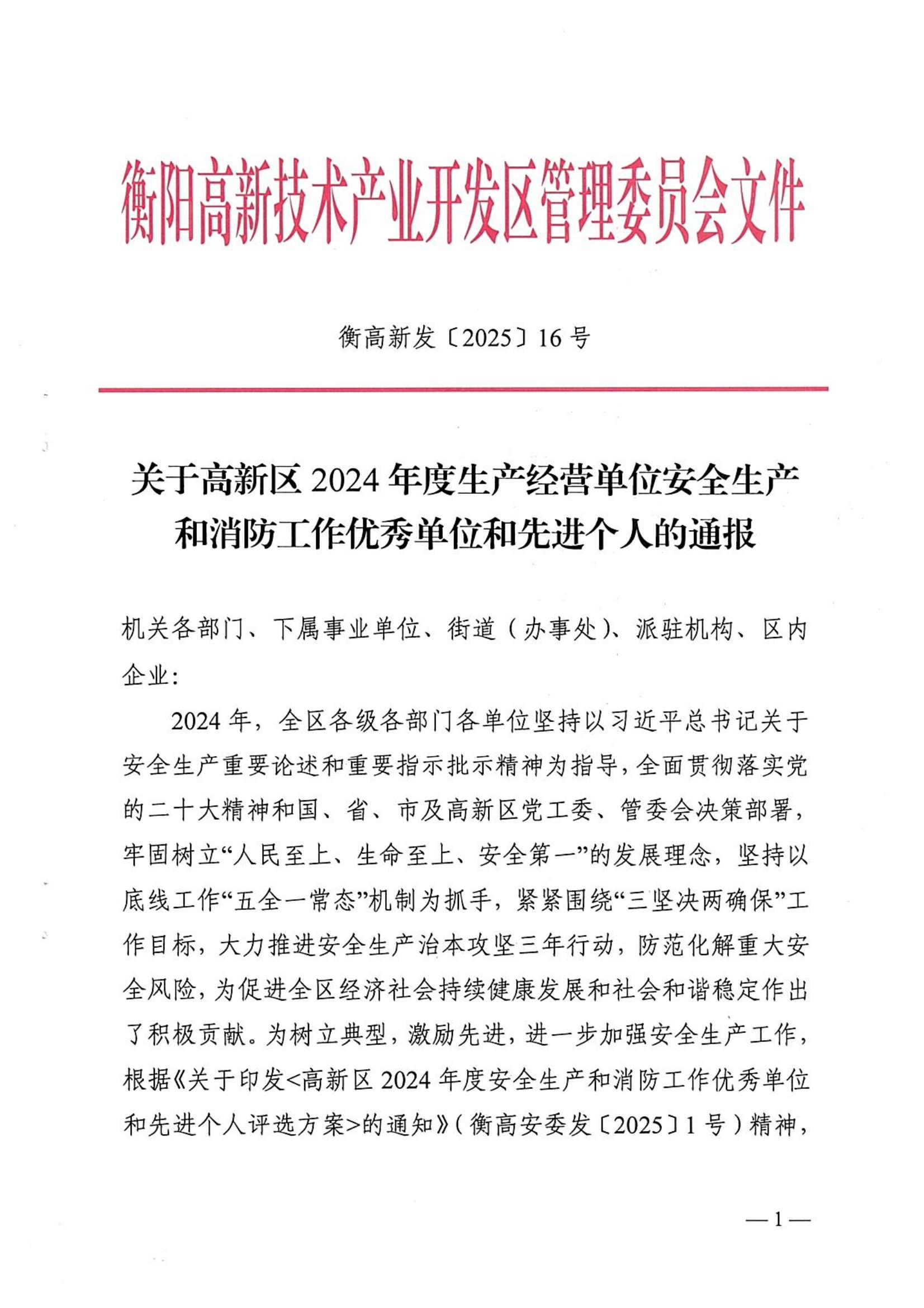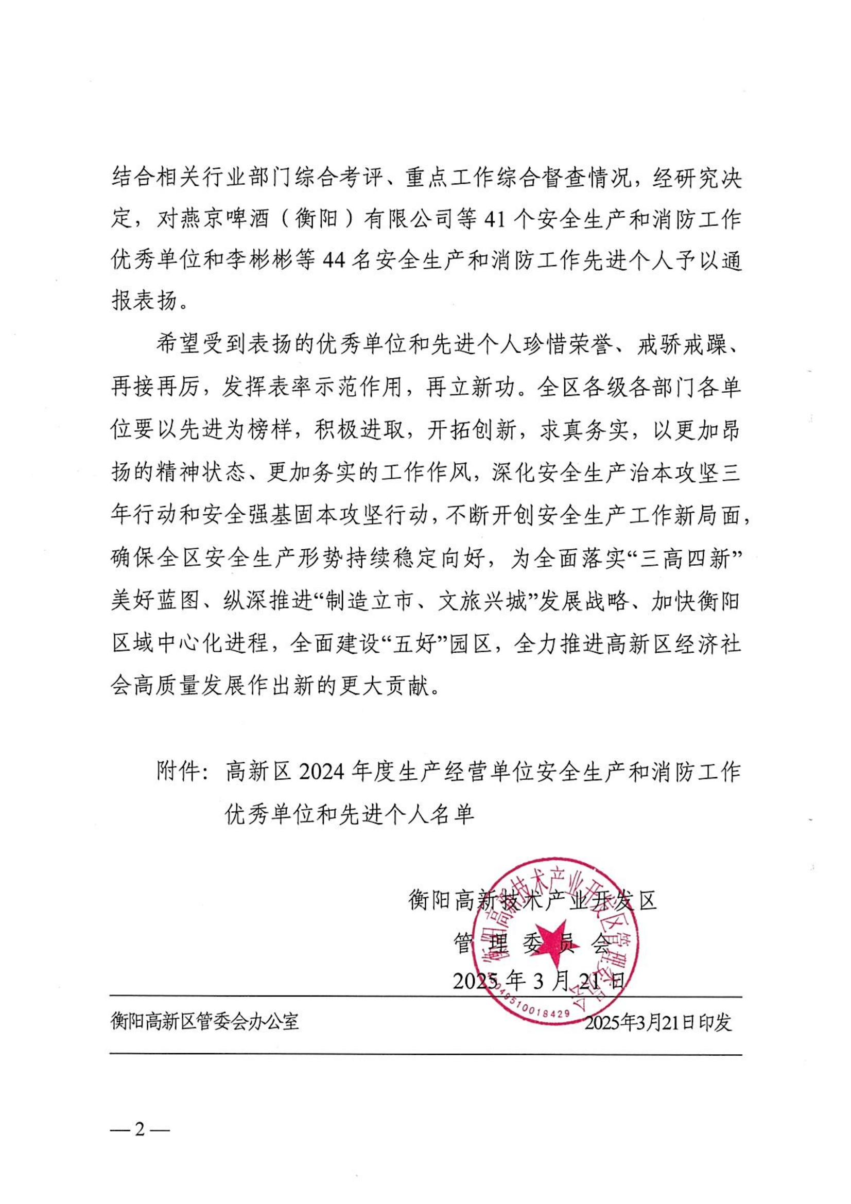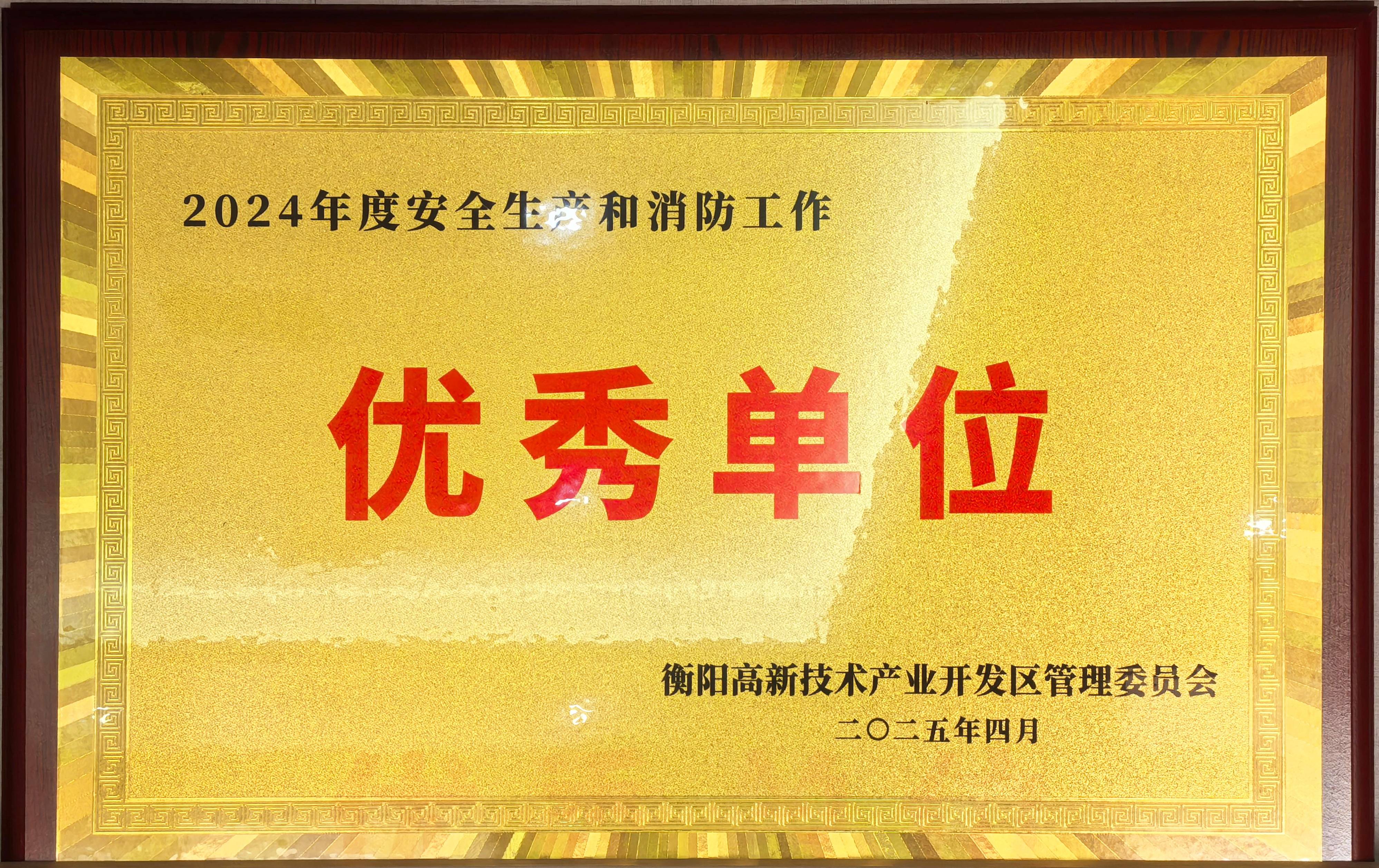 喜訊!億輝集團(tuán)榮獲“衡陽市高新區(qū)2024年度生產(chǎn)經(jīng)營單位安全生產(chǎn)和消防工作優(yōu)秀單位”稱號