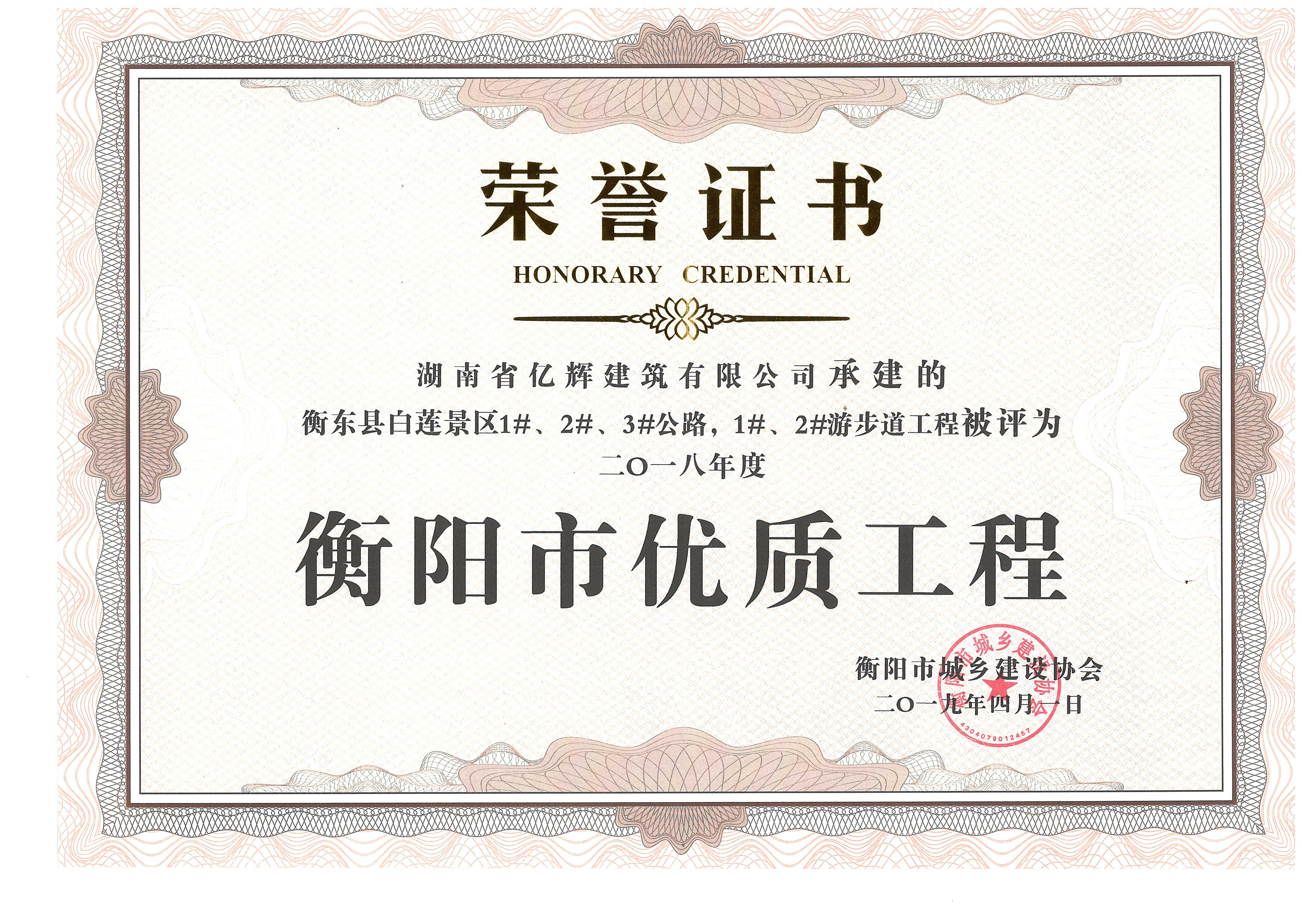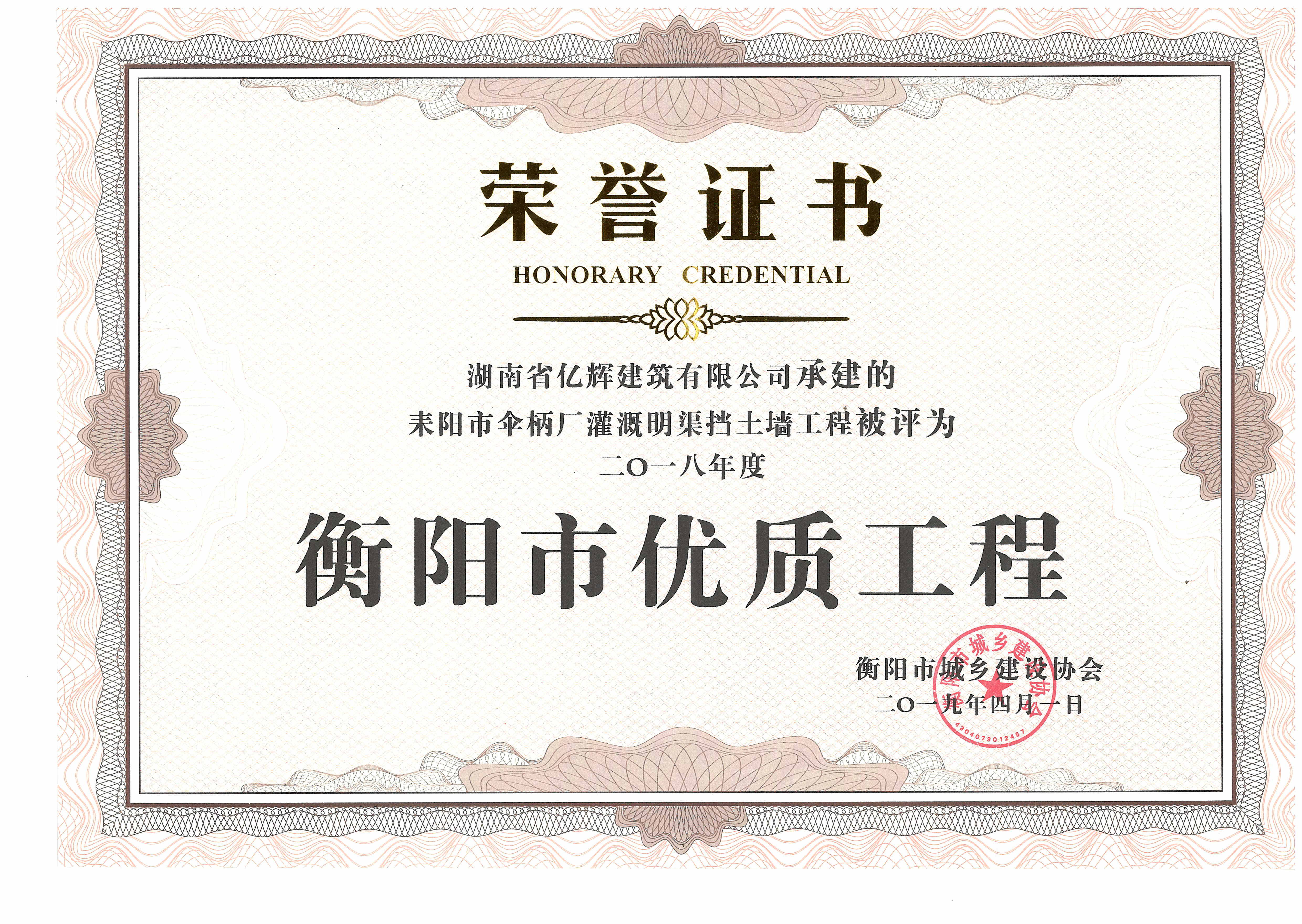 公司四個項目榮獲“衡陽市優(yōu)質工程”獎